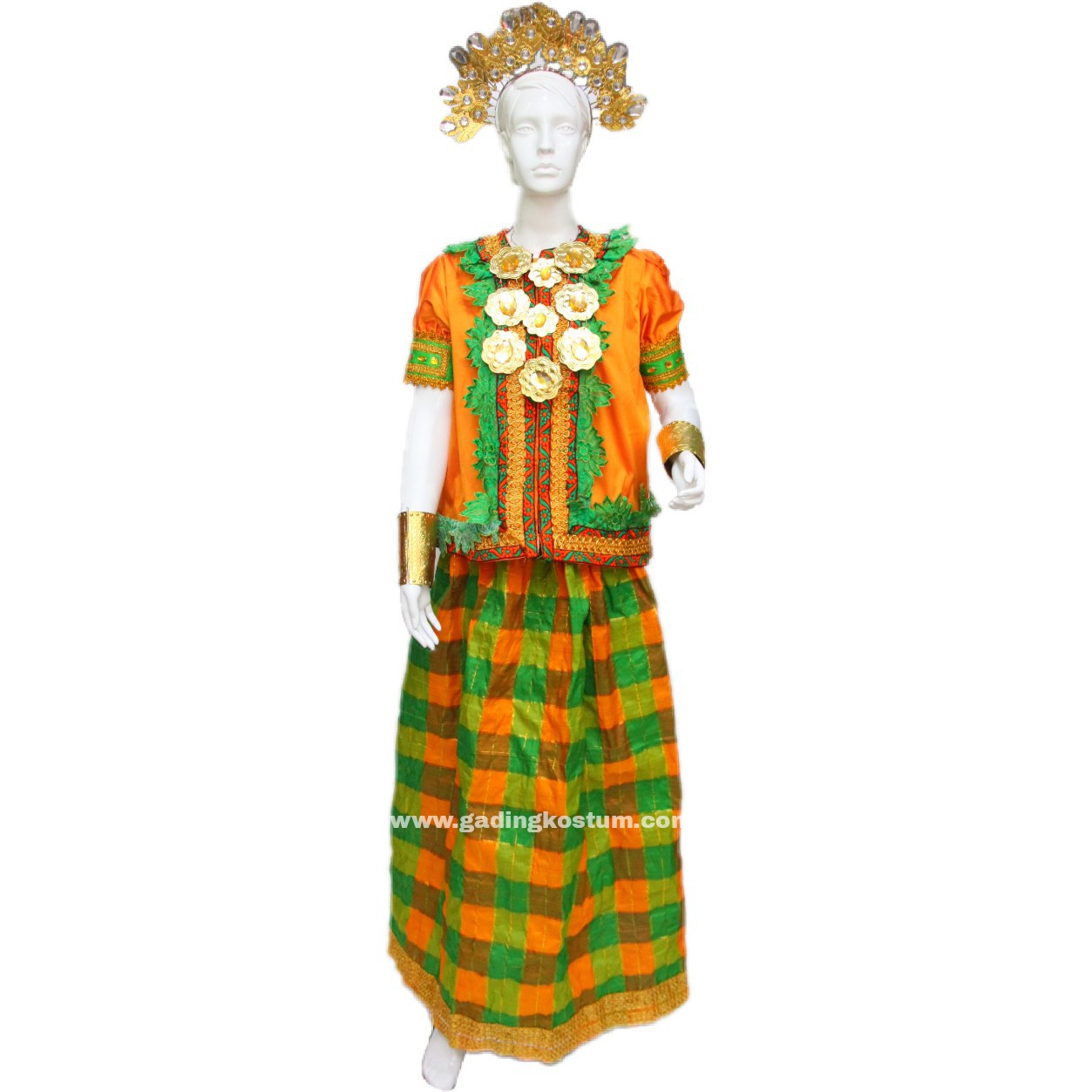 - Lebar dada 55 cm, Panjang baju 59 cm, Lebar pinggang rok 30-74 cm, Panjang rok 106 cm
